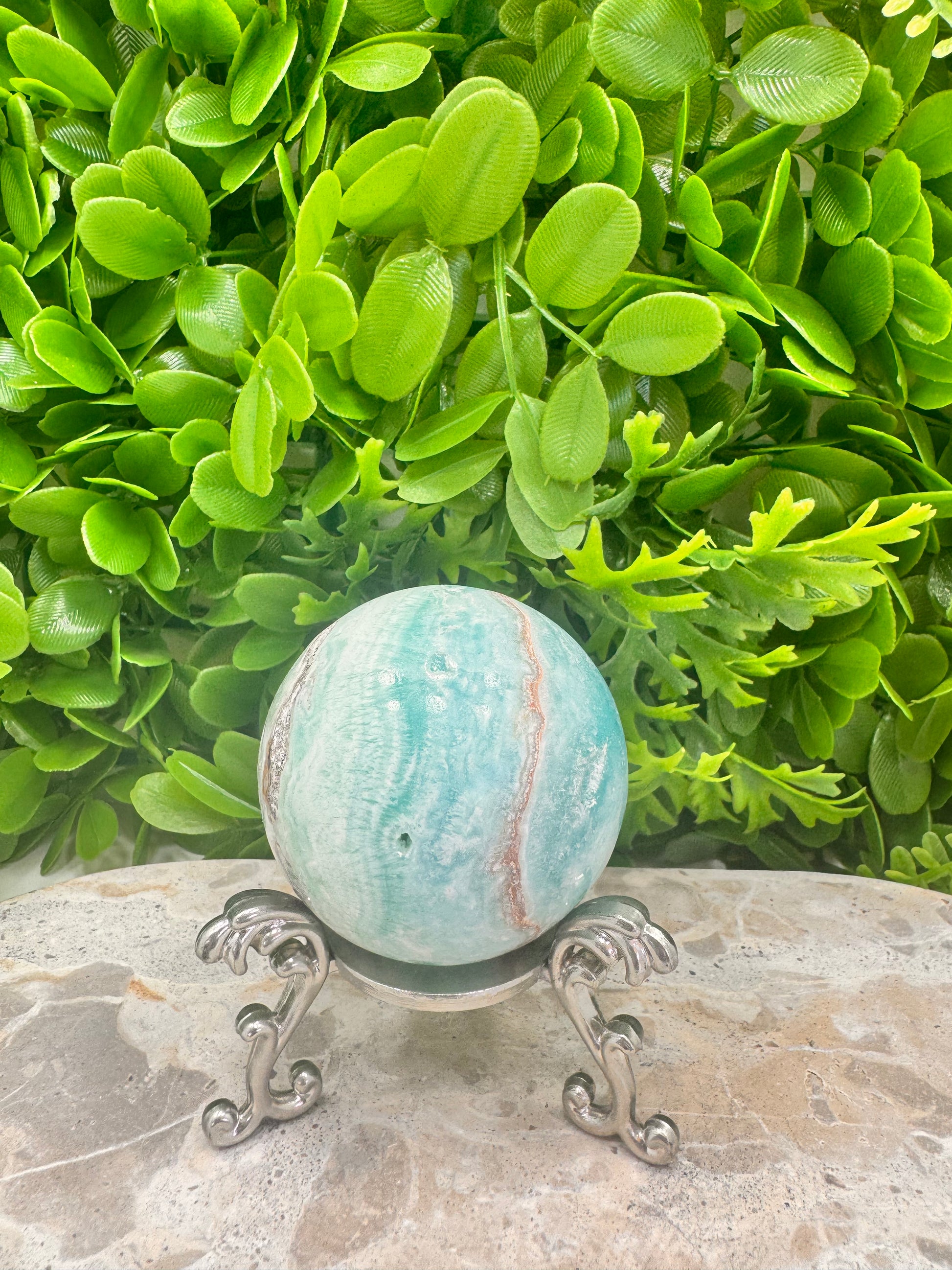 Blue Aragonite with Smithsonite Sphere 262g