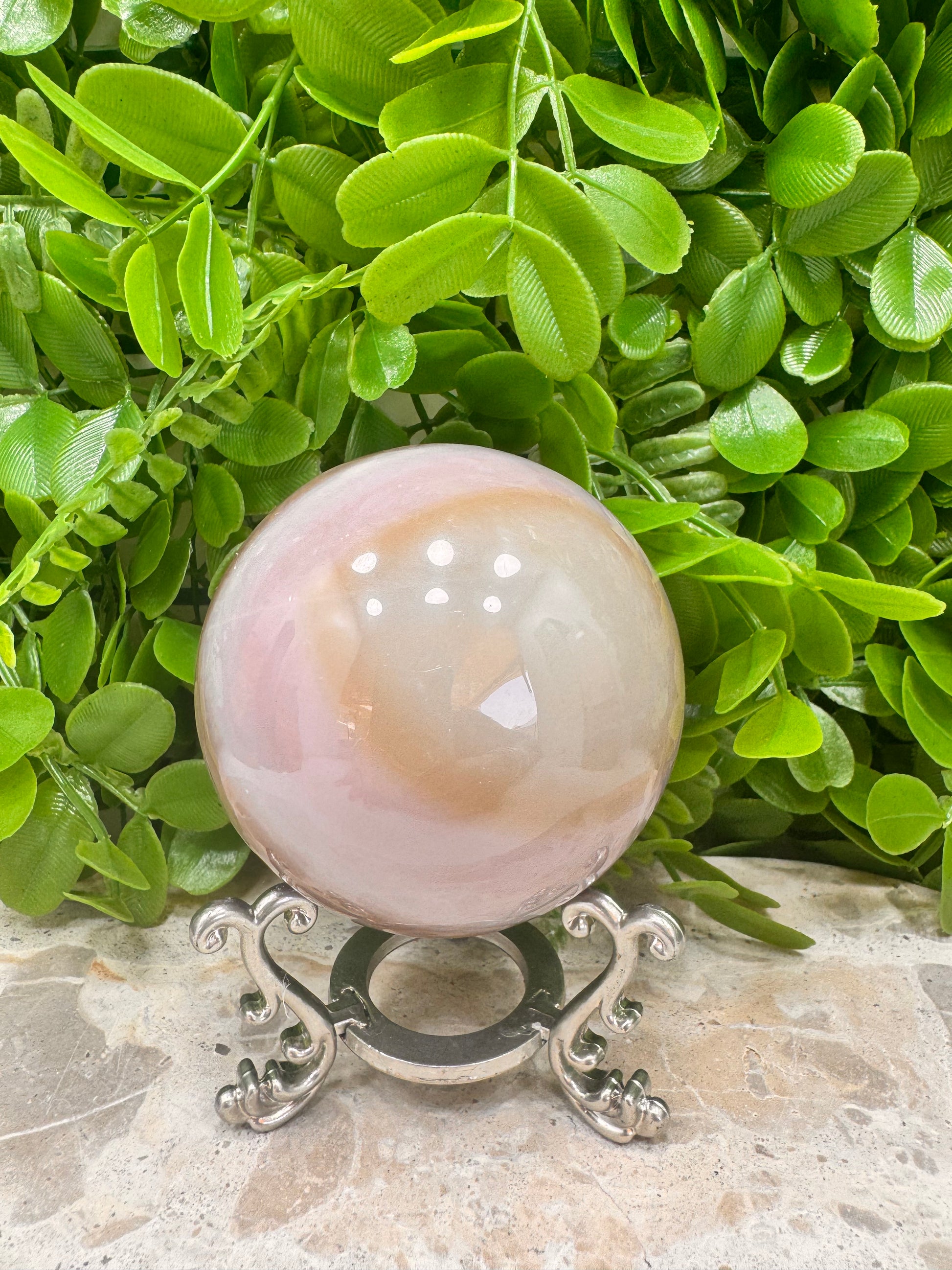 Pink Pistachio Calcite Sphere 552g