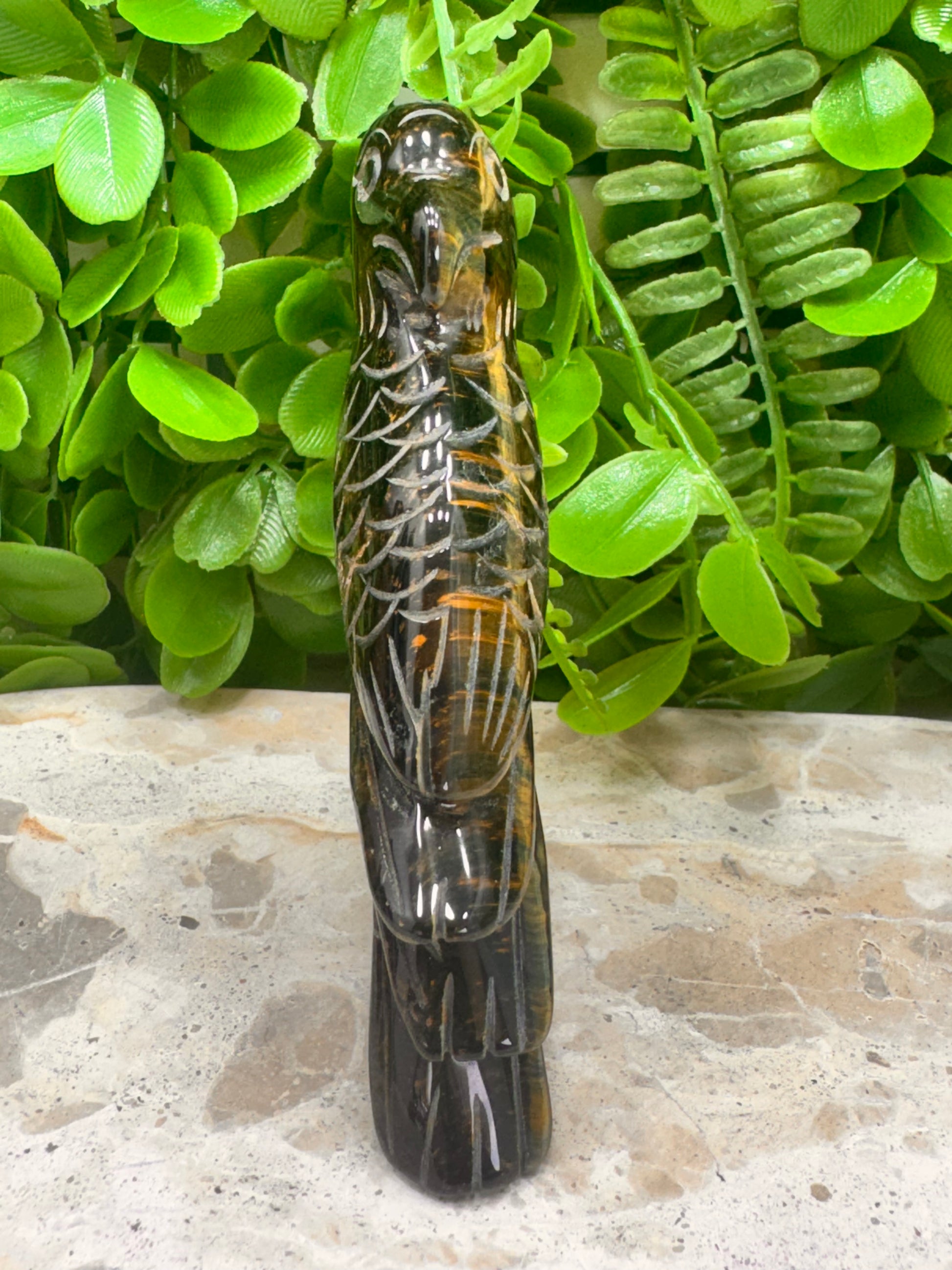 Yellow/Blue Tigers Eye Bird 188g